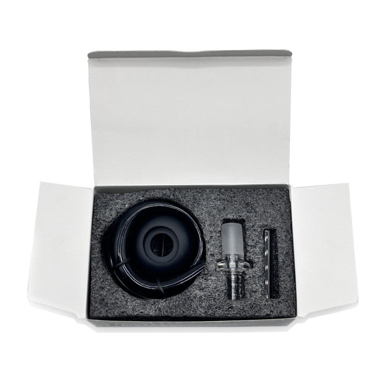 Transform the device's airflow by taking out the Downstem from the designated Downstem Gasket and inserting it into the Silicone Hookah Adapter. Then, place the Chill Whip's Borosilicate Glass Plug at the end into the Silicone Downstem Gasket.