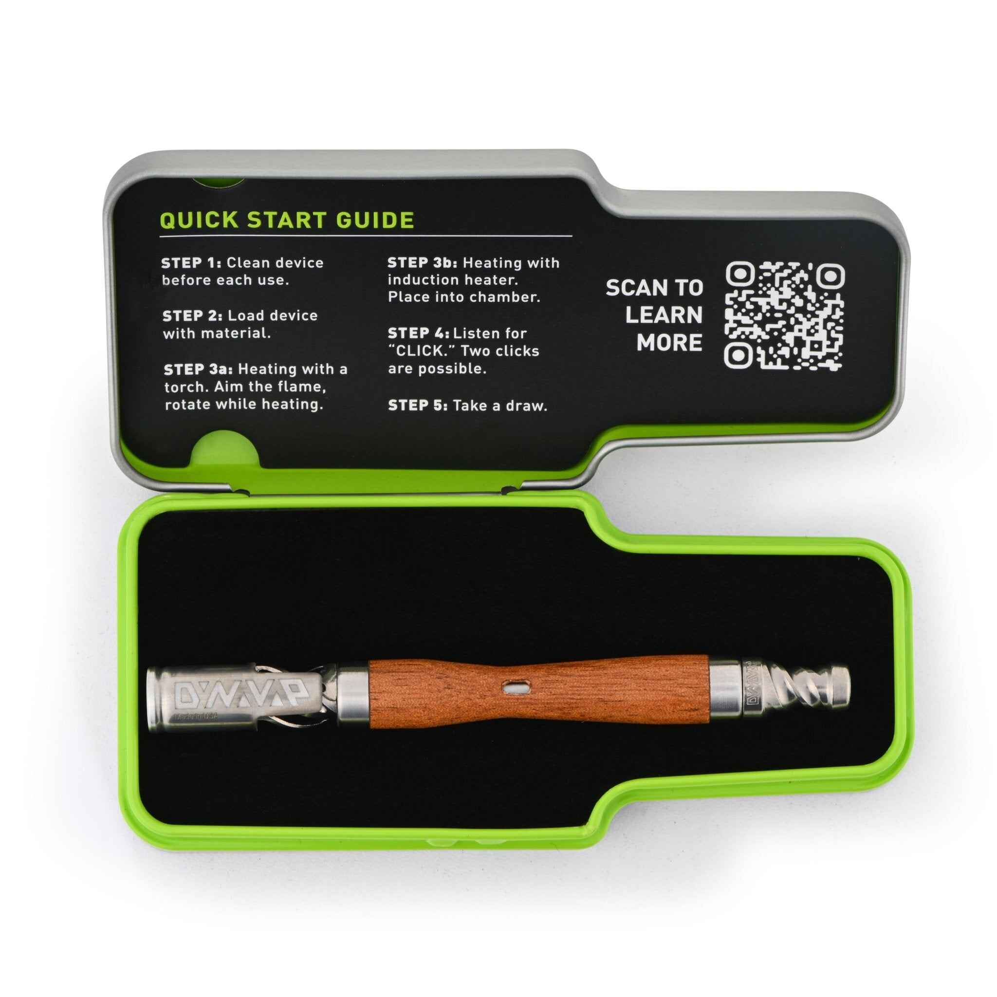The key components of the WoodWynd include DynaVap's signature Captive Cap, which ensures efficient vaporization and even heating of your herb. The Triple Helix Titanium Tip, with its thicker chamber walls, provides exceptional heat retention for a fulfilling dry herb vaping experience. The WoodWynd Stainless Steel CCD (Circumferential Compression Diffuser) further enhances flavor by evenly distributing heat within the chamber.