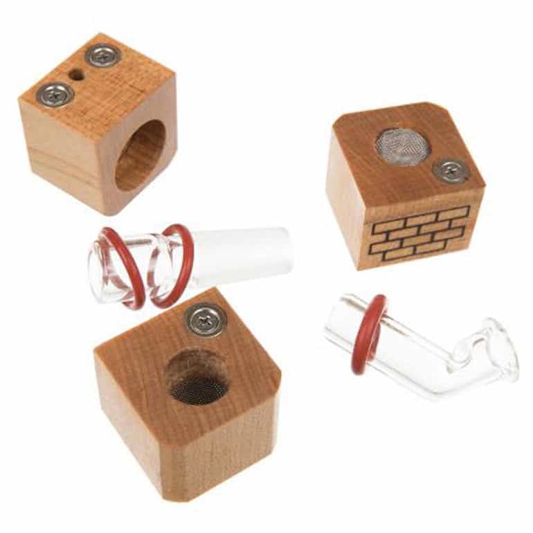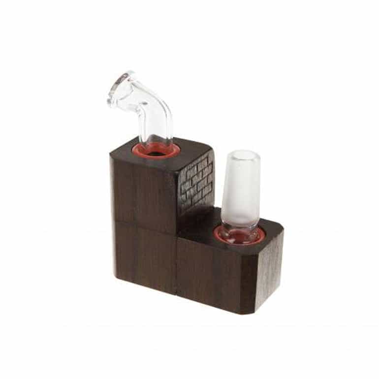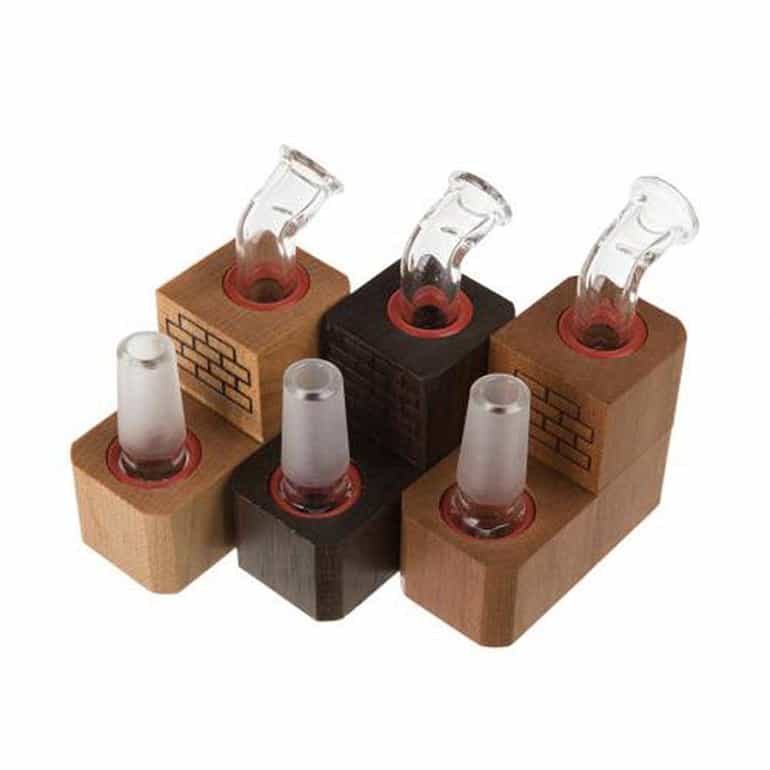 Crafted from polished wood—walnut, cherry, rock maple, or black limba—the Flip Brick also features smooth glass pieces to deliver clean and delicious vapour. The Flip Brick sits upright to store, then flips to attach to your favourite water pipe. The device features restrictor discs to prevent your material from combusting.