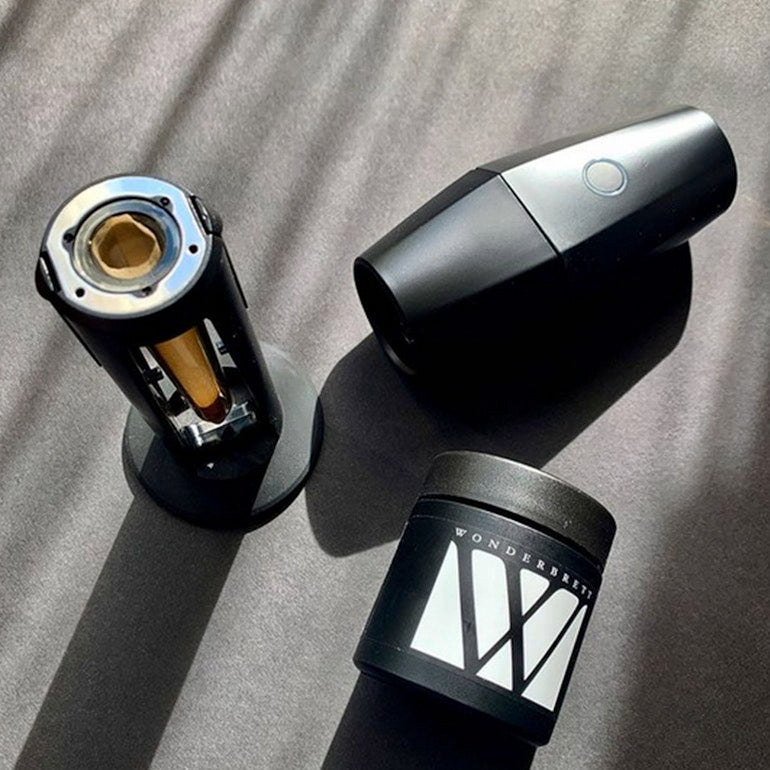 Fill up the chamber with your favourite herb and place the cone in the tube. Attach the grinder and pipe with the magnetic connectors located at the bottom of the device. Start the unit by press and hold the power button, press again to start grinding. This innovative, cutting-edge grinder senses any changes in the material and will automatically adapt and ensure perfect consistency. Just sit back and relax while the cone is evenly filled, grab and enjoy!