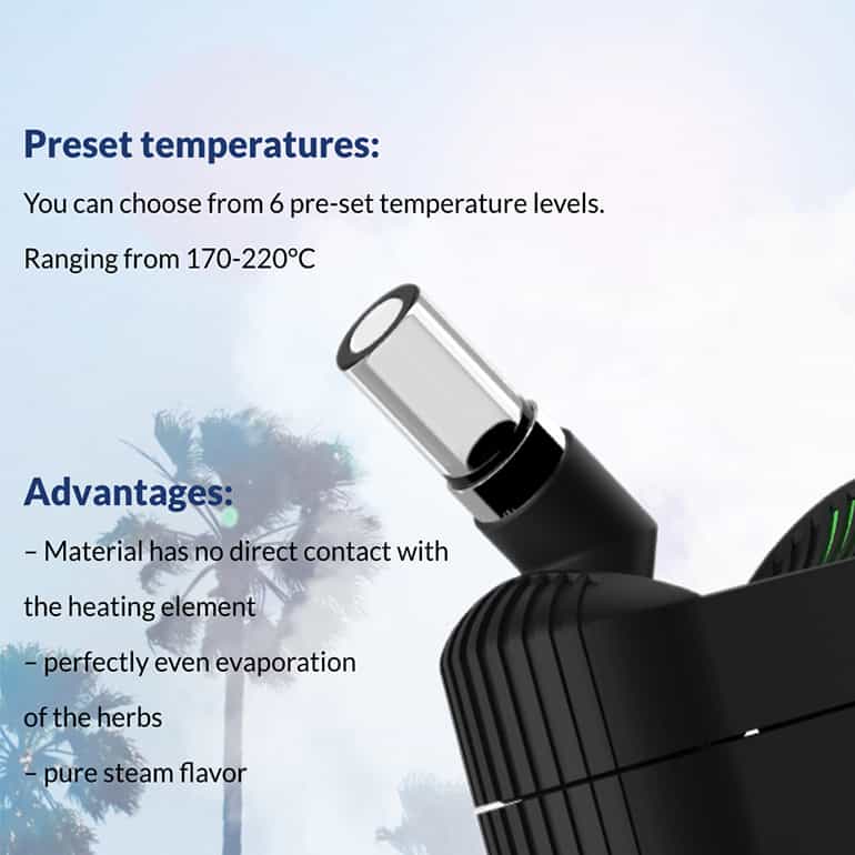 Optimal temperature setting for Herbs - Vaporizing herbs is a great way to enjoy them without smoke. Setting your device at 180°C (356 °F) will help you get the most out of every puff by releasing all their beneficial components into vapor faster and more efficiently than if they were burned, allowing for longer sessions with less rest time in between puffs!
